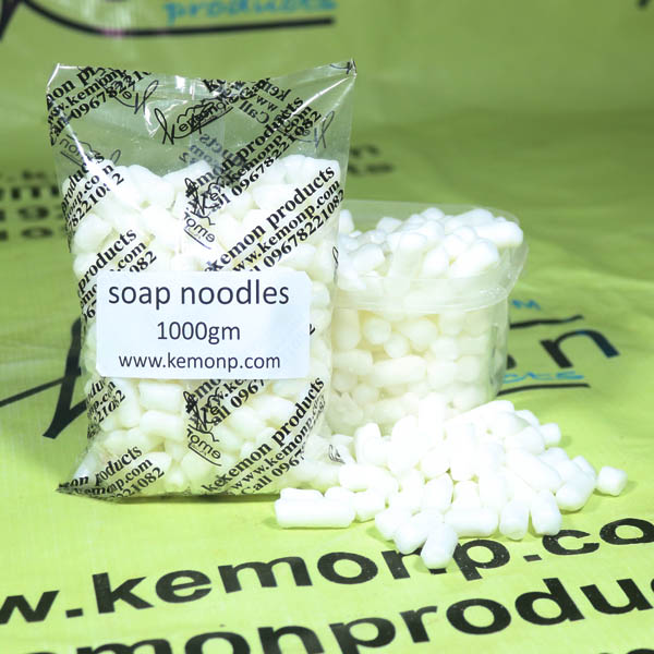 Noodles soaps are derived from a sodium hydroxide reaction with vegetable oil (coconut oil, palm oil, or olive oil) or from animal fats (tallow). It is a sodium salt of fatty acids and the most important additive for manufacturing soap bars.